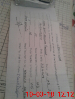 | School Visited by School Health & Nutrition Supervisor (No. of Visits) | 1 | Name1: | Irum Naz | Name2: | None |