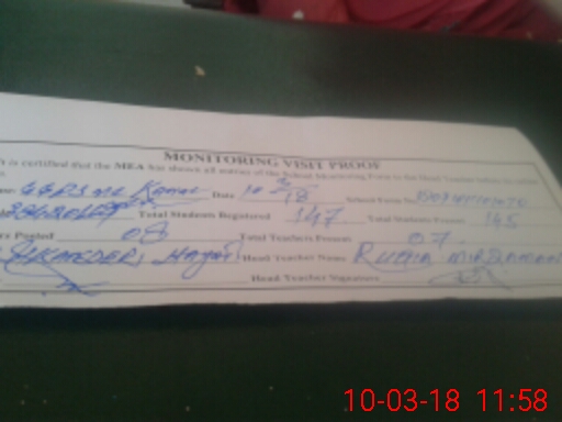 | Attendance Register | Head Teacher | MEA with School | Visit Proof |