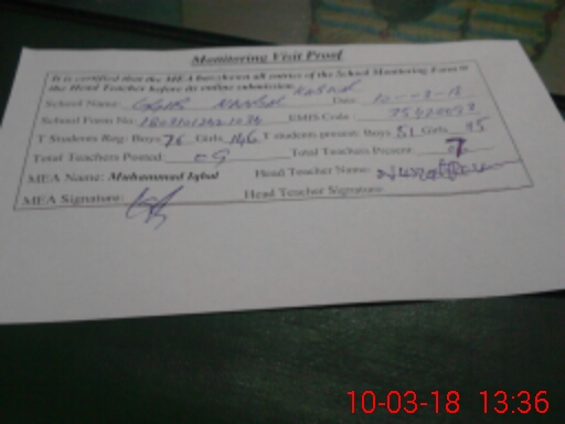 | Certified that this School was Inspected by the Undersigned MEA/DMO Today and the Information Stated Above is as Per Record. | |||||
