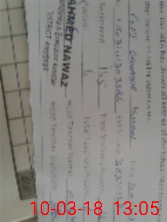 | Name: Qa**** Ab**** Designation: (School Headmaster's/Headmistress's) PST Phone/Cell Number: 03**** |