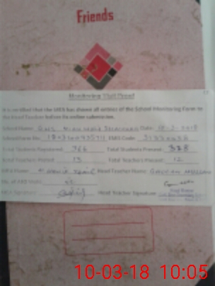 | Attendance Register | Head Teacher | MEA with School | Visit Proof |