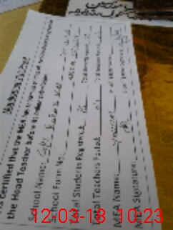 | Name: NA**** AB**** Designation: (School Headmaster's/Headmistress's) PST Sci-math Phone/Cell Number: 03**** |