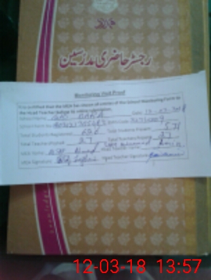 | Attendance Register | Head Teacher | MEA with School | Visit Proof |