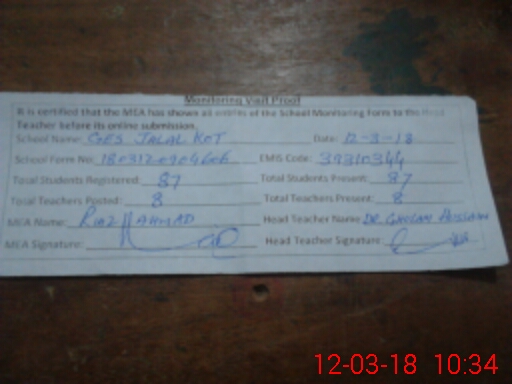 | EMIS Code: 39310344 | Name of School: GES JALAL KOT | |||