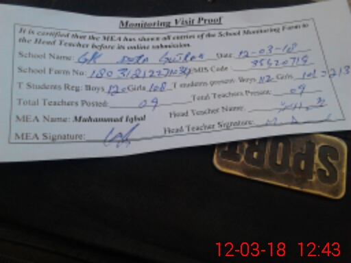 | EMIS Code: 35420719 | Name of School: GPS DERA GUJRAN | |||
