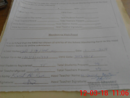 | Attendance Register | Head Teacher | MEA with School | Visit Proof |