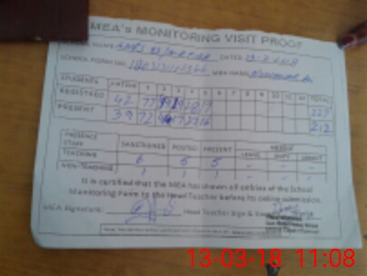 | Attendance Register | Head Teacher | MEA with School | Visit Proof |