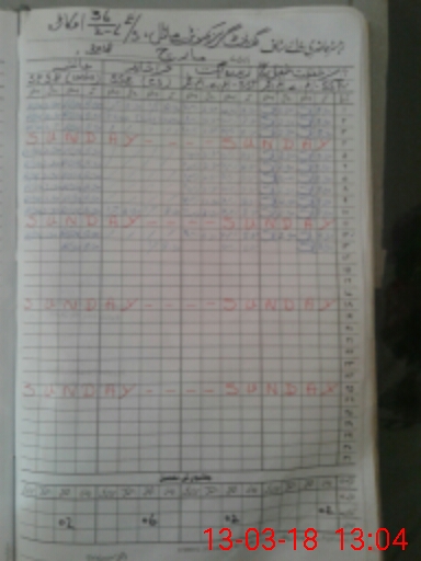 | CNIC | Full Name | Designation | R/C | Absence During Last Calender Month |