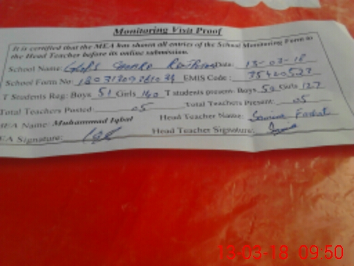 | Certified that this School was Inspected by the Undersigned MEA/DMO Today and the Information Stated Above is as Per Record. | |||||