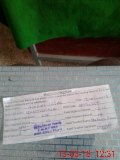 | Attendance Register | Head Teacher | MEA with School | Visit Proof |