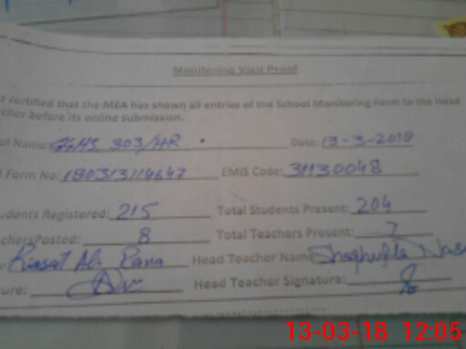 | EMIS Code: 31130048 | Name of School: GGHS CHAK NO. 303/HR | |||