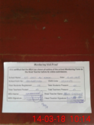 | Attendance Register | Head Teacher | MEA with School | Visit Proof |