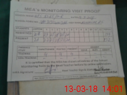 | Attendance Register | Head Teacher | MEA with School | Visit Proof |