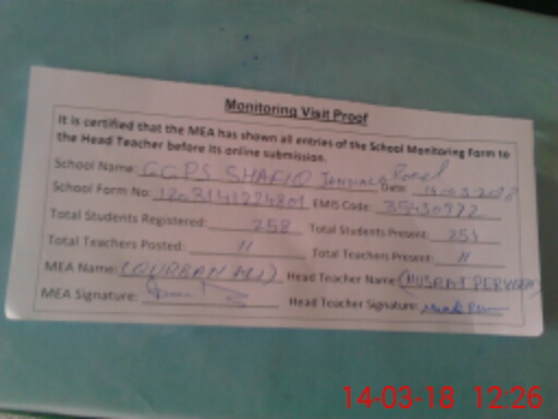 | EMIS Code: 35430972 | Name of School: GGPS SHAFIQ JANDIALA ROAD MUHAMMAD PURA | |||