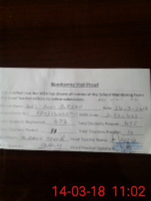 | Attendance Register | Head Teacher | MEA with School | Visit Proof |