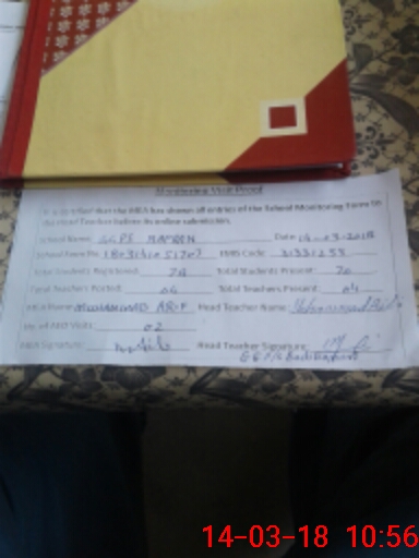 | Certified that this School was Inspected by the Undersigned MEA/DMO Today and the Information Stated Above is as Per Record. | |||||