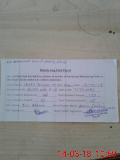 | Attendance Register | Head Teacher | MEA with School | Visit Proof |