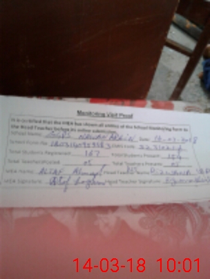 | Certified that this School was Inspected by the Undersigned MEA/DMO Today and the Information Stated Above is as Per Record. | |||||