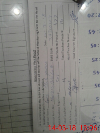 | Attendance Register | Head Teacher | MEA with School | Visit Proof |