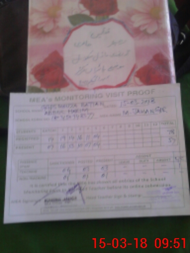 | Attendance Register | Head Teacher | MEA with School | Visit Proof |