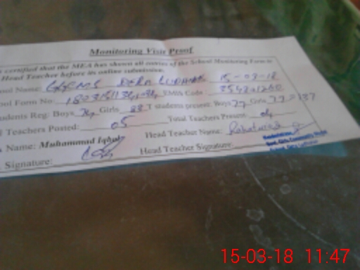 | Certified that this School was Inspected by the Undersigned MEA/DMO Today and the Information Stated Above is as Per Record. | |||||