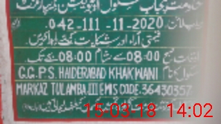 | EMIS Code: 36430357 | Name of School: GGPS HAIDER ABAD KHAKWANI, TULAMBA | |||