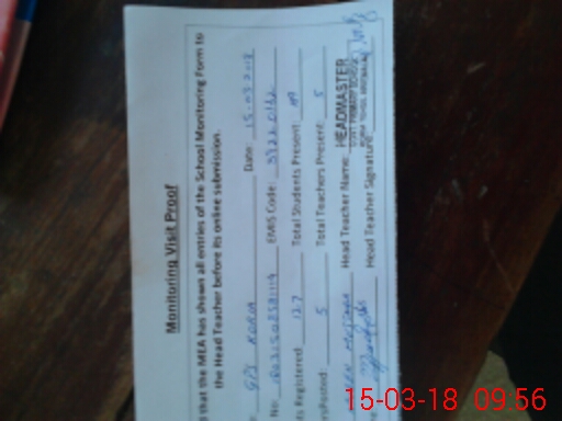 | Attendance Register | Head Teacher | MEA with School | Visit Proof |