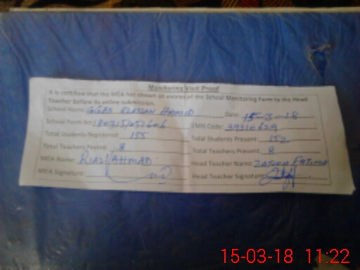 | Attendance Register | Head Teacher | MEA with School | Visit Proof |