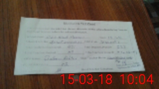 | Monitoring Date: 15-03-2018 | Start Time: 15-03-2018 09:17 AM | End Time: 15-03-2018 10:15 AM | Name of MEA: Sa**** Ak**** | |
