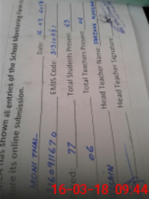 | Attendance Register | Head Teacher | MEA with School | Visit Proof |