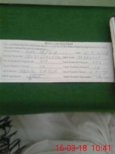 | Certified that this School was Inspected by the Undersigned MEA/DMO Today and the Information Stated Above is as Per Record. | |||||