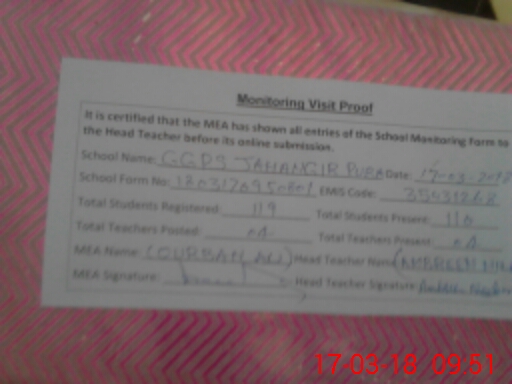 | EMIS Code: 35431268 | Name of School: GGPS JAHANGIR PURA | |||