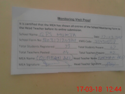 | EMIS Code: 35430558 | Name of School: GPS MUKTA | |||