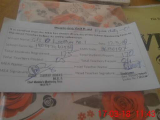 | EMIS Code: 36130197 | Name of School: GPS LOOTHER NO. 1 | |||