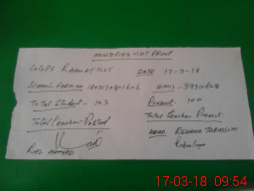 | EMIS Code: 39310628 | Name of School: GGPS REHMAT KOT | |||