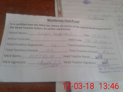 | Attendance Register | Head Teacher | MEA with School | Visit Proof |