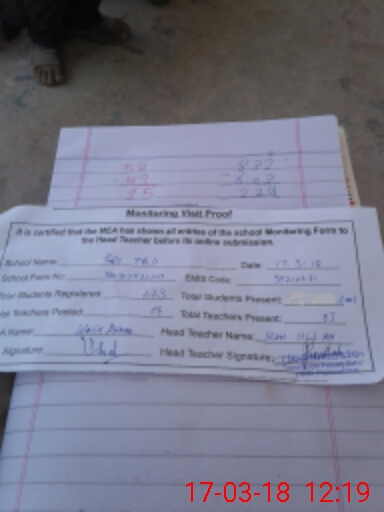 | Attendance Register | Head Teacher | MEA with School | Visit Proof |