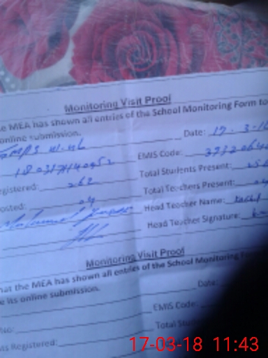| Attendance Register | Head Teacher | MEA with School | Visit Proof |