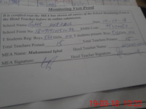 | EMIS Code: 35430053 | Name of School: GHS HARDEV | |||
