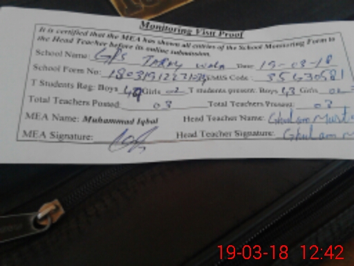 | EMIS Code: 35430581 | Name of School: GPS TARY WALA | |||