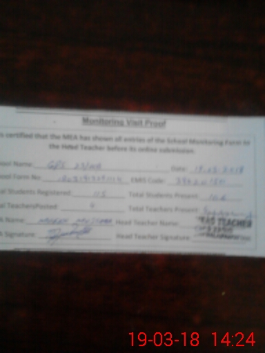 | Certified that this School was Inspected by the Undersigned MEA/DMO Today and the Information Stated Above is as Per Record. | |||||