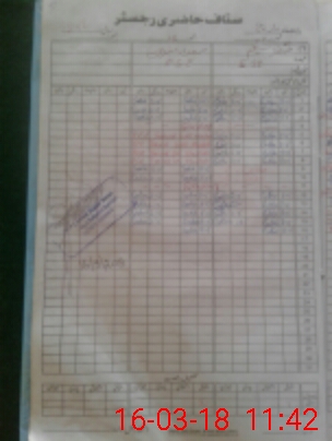 | CNIC | Full Name | Designation | R/C | Absence During Last Calender Month |