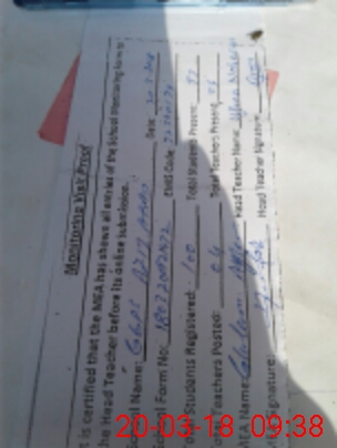 | Attendance Register | Head Teacher | MEA with School | Visit Proof |