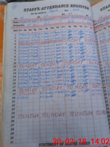 | CNIC | Full Name | Designation | R/C | Absence During Last Calender Month |