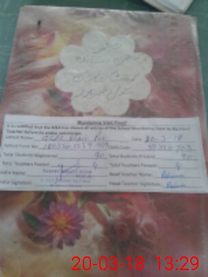 | School Visited by School Health & Nutrition Supervisor (No. of Visits) | 1 | Name1: | M Sajid | Name2: | |
