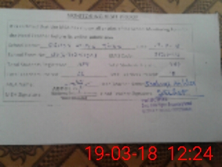 | Monitoring Date: 19-03-2018 | Start Time: 19-03-2018 11:30 AM | End Time: 19-03-2018 12:33 PM | Name of MEA: HA**** AB**** QA**** | |
