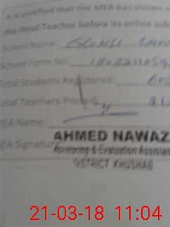 | Certified that this School was Inspected by the Undersigned MEA/DMO Today and the Information Stated Above is as Per Record. | |||||