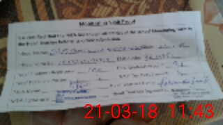 | Monitoring Date: 21-03-2018 | Start Time: 21-03-2018 11:13 AM | End Time: 21-03-2018 11:44 AM | Name of MEA: SH**** AH**** | |