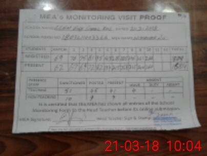 | Attendance Register | Head Teacher | MEA with School | Visit Proof |