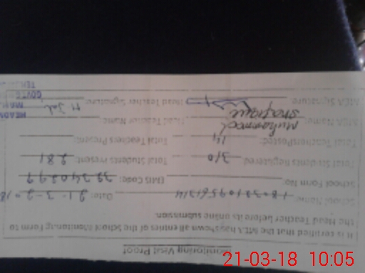 | Name: Ir**** Sh**** Designation: (School Headmaster's/Headmistress's) S.S. E Phone/Cell Number: 03**** |